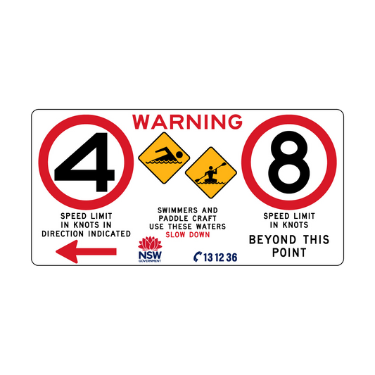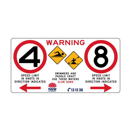 Warning Swimmers And Paddle Craft with Speed Beyond on Right