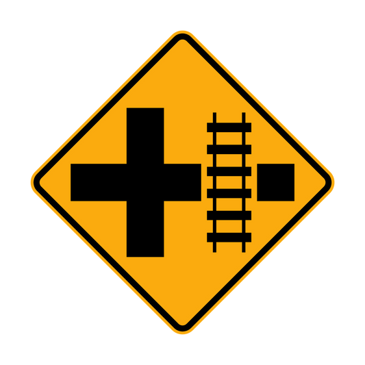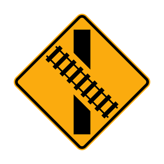 Warning: Rail Crossing On Side Road Left & Right Sign