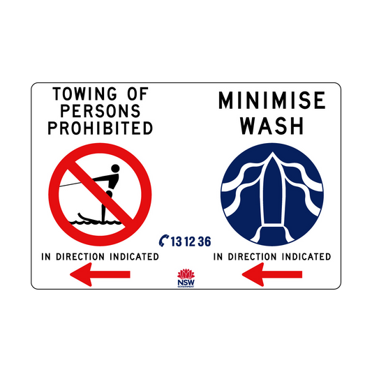 Keep our waterways safe with “minimise wash” signs. Reduce vessel speed to prevent damage, injury, and disruption. Order online today.