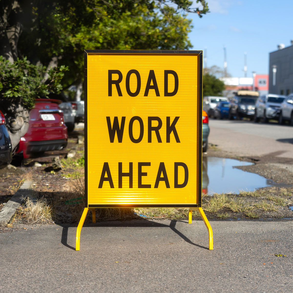 This bright, reflective "Warning: Roadwork Ahead" Sign is essential for any road or construction site where work is being carried out. Its high visibility ensures that drivers are alerted well in advance, promoting cautious driving and enhancing safety for both workers and the public. Easy to install, this durable sign is designed to withstand various weather conditions, making it a reliable choice for maintaining a safe work environment.